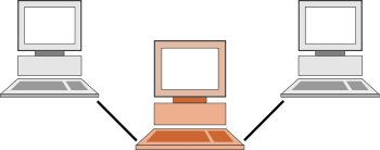 Schematic representation of a proxy server, where the computer in the middle acts as the proxy server between the other two.